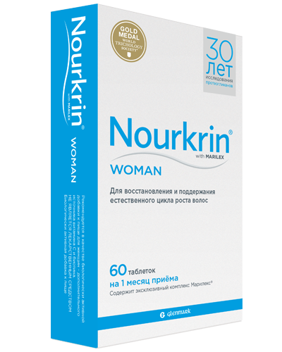 Nourkrin® Woman с уникальным комплексом Marilex® помогает поддержать, нормализовать и сохранить цикл роста волос, тщательно доставляя нужные питательные вещества в волосяные фолликулы.