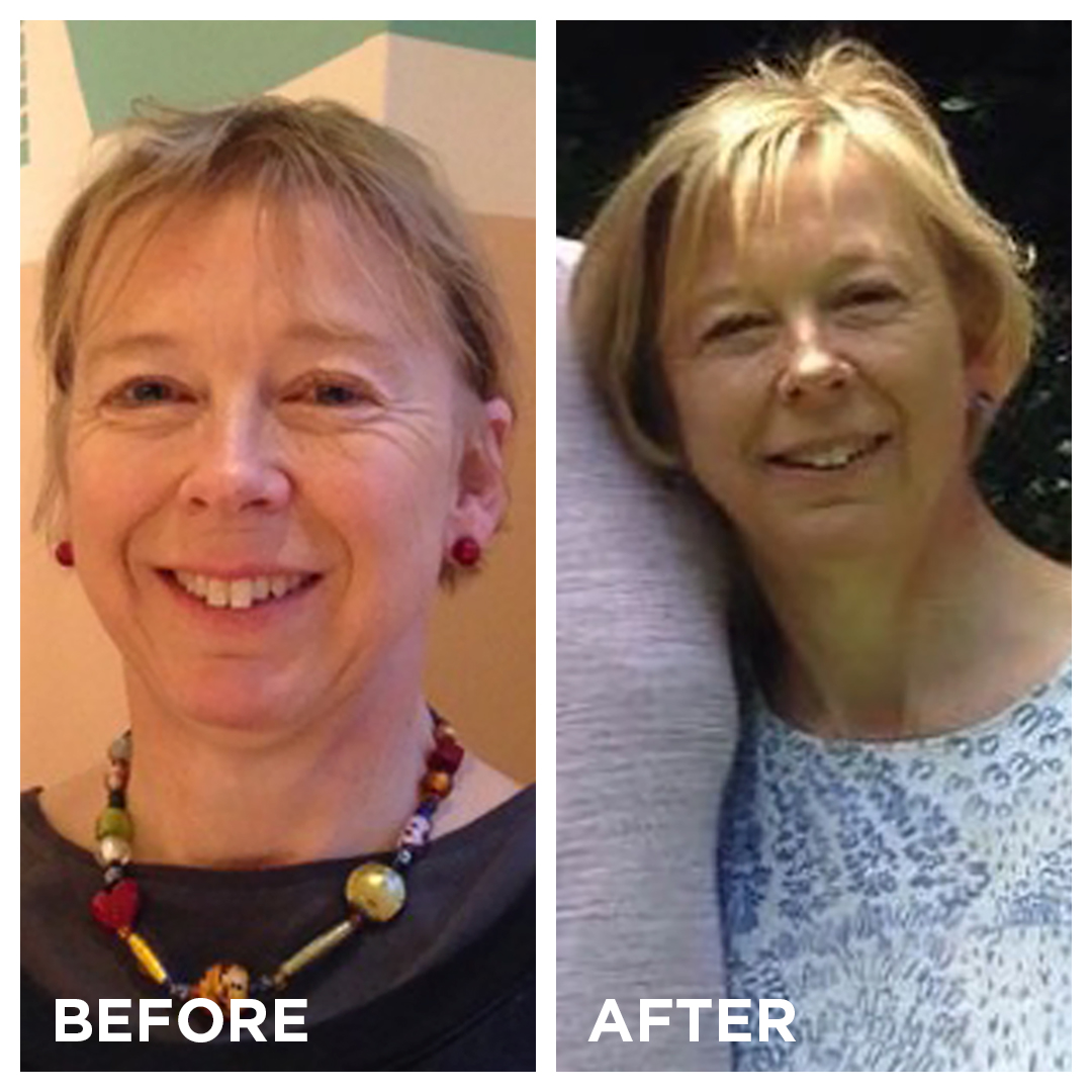 我討厭我的身體接觸過多的化學品和藥物,所以我打電話給克里斯,說我要試試由魚提取物製成的PRT+ Pro Formula補充劑。我的頭髮變得更濃密,並且在服用九個月後,我感到足夠自信,不再需要在公眾場合藏起我的頭髮。我減少了幾個月的劑量,每天服用一顆藥丸,後來就停止服用了。一直無法得知自己脫髮的原因實在很可怕,但我很高興我找到了一個自然的解決方案,並且有效。